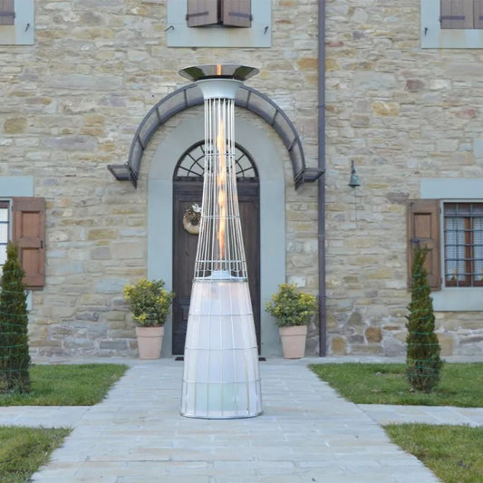Deze terrasheater is geliefd bij stijlvolle horeca en designliefhebbers dankzij zijn heldere vlammen, die niet alleen verwarmen maar ook een unieke ambiance brengen. Hij straalt letterlijk luxe en verfijning uit, zonder in te leveren op prestaties.