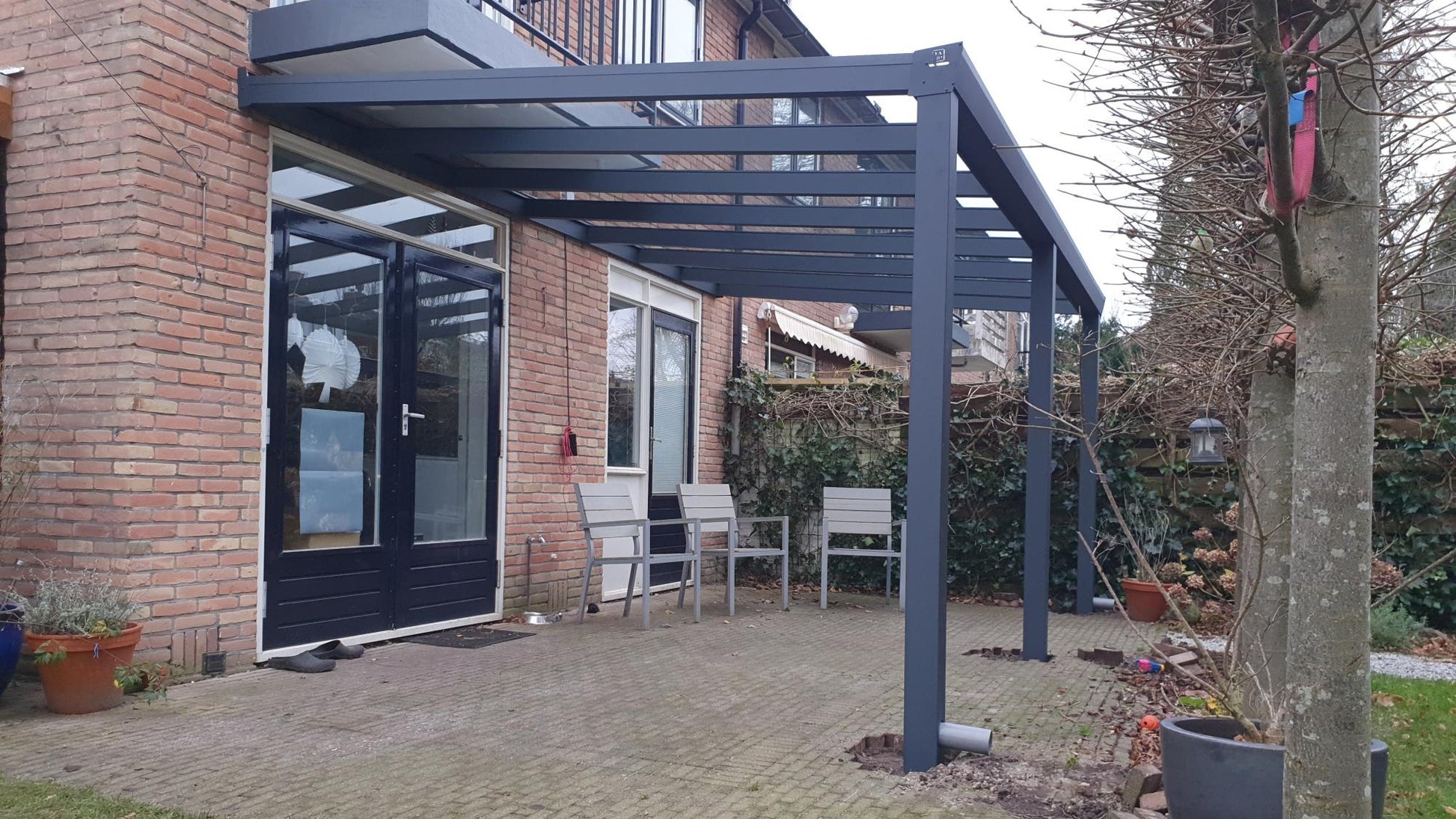 Aluminium veranda met polycarbonaat dak 500x300 cm op 2 staanders